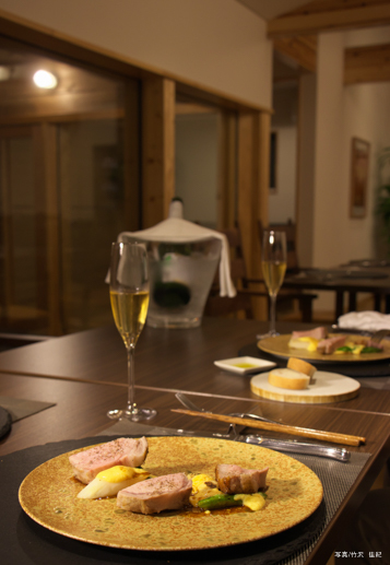 手作りの料理を。建物づくりにも自分を手を使いたいとのシェフの想いで、まずは外部の木部を一緒に塗りました。シェフを見ていると料理と建築は通ずるところがあるように思います。